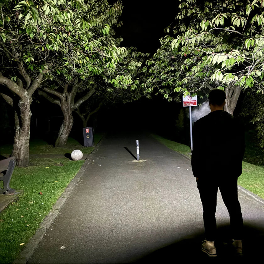 Salgo a caminar por las noches con mi perro y casi siempre llevaba una linterna en la mano. Con esta me olvido de todo, se ve genial y voy mucho más tranquila.