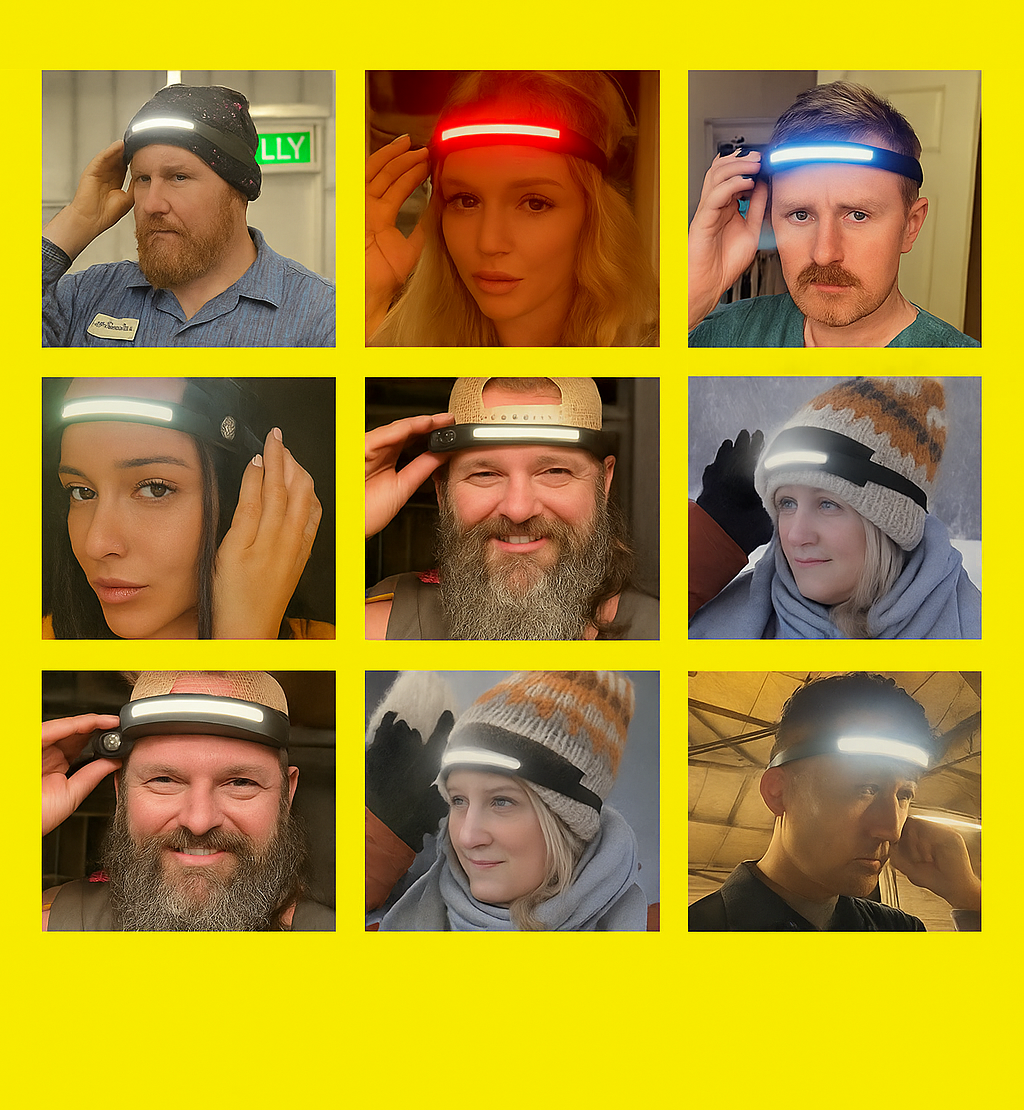 Linterna Frontal LED NEXORA 230° Manos Libres, Visión Total